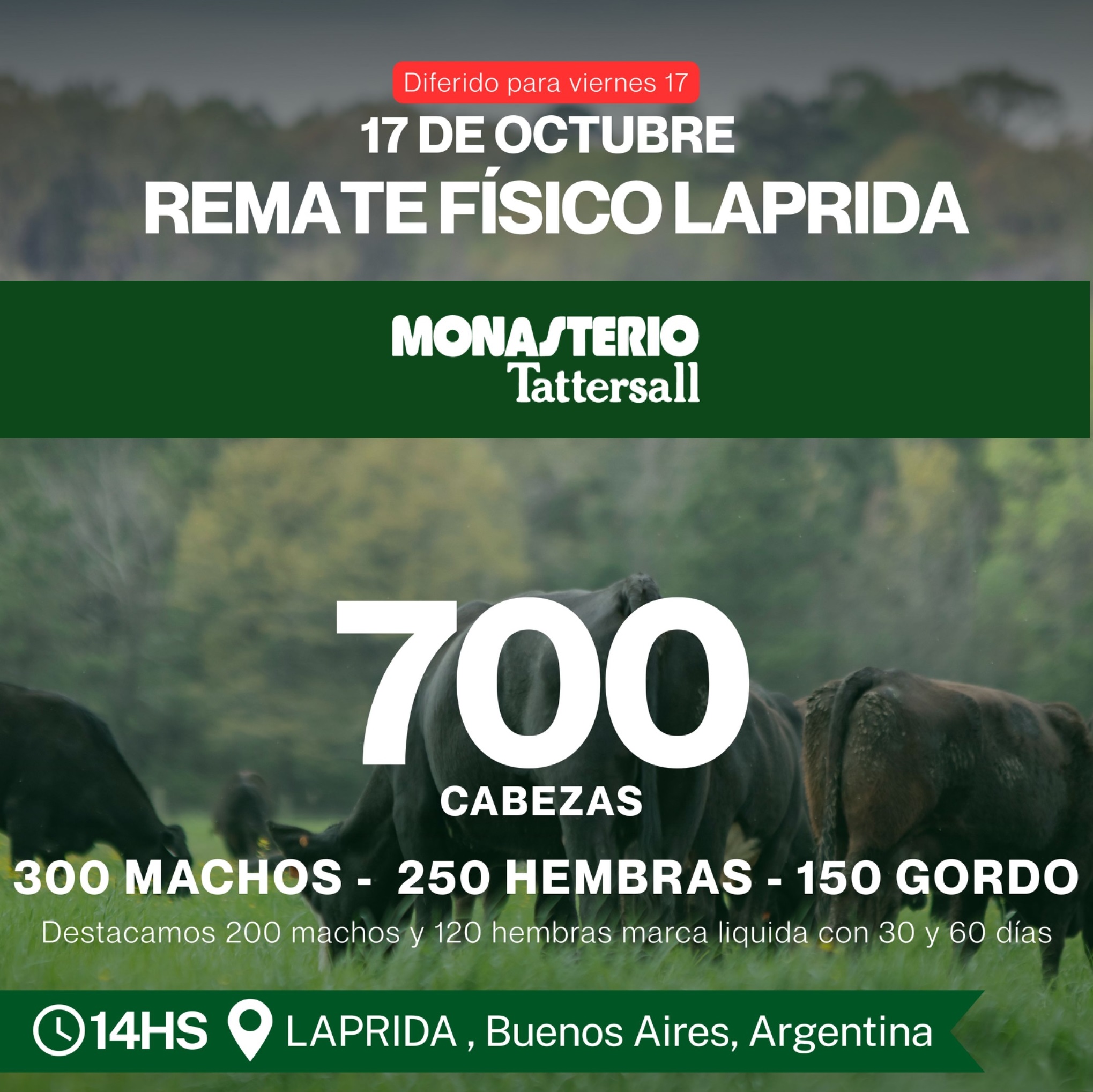 Monasterio Tattersall | Remate Cabaña La Amistad en Azul | 03/10/2025