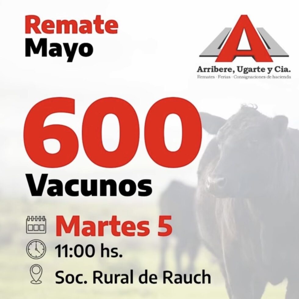 Firma: Arribere, Ugarte y Cia. Remate: Físico Plataforma/Lugar: Sociedad Rural de Rauch...