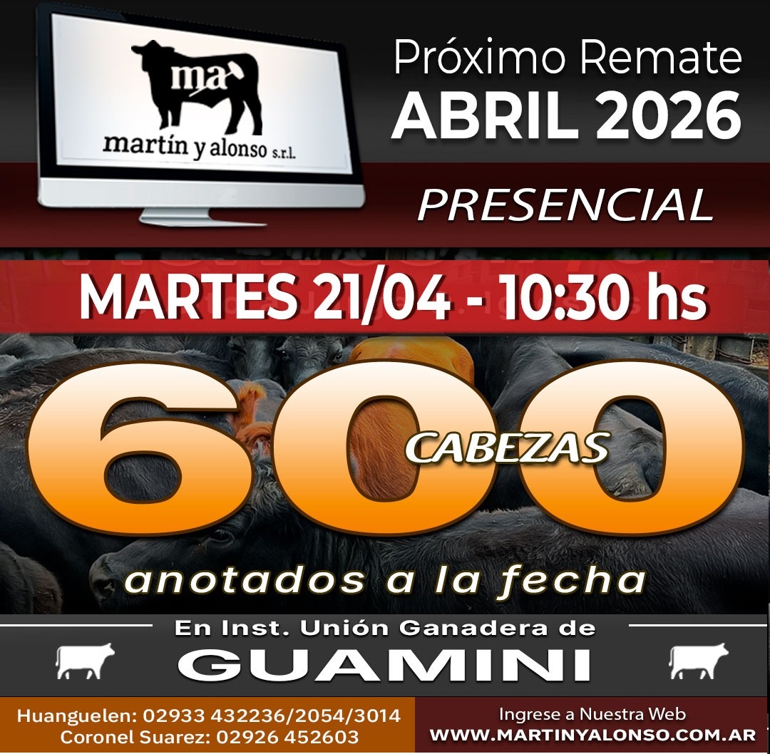 Firma: Martín y Alonso Remate: Físico Plataforma/Lugar: Predio propio en Coronel Suárez...