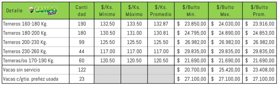 Calidad de encierre y valores de mercado hicieron que con agilidad la subasta fuera muy rápida y dejó éstos valores: