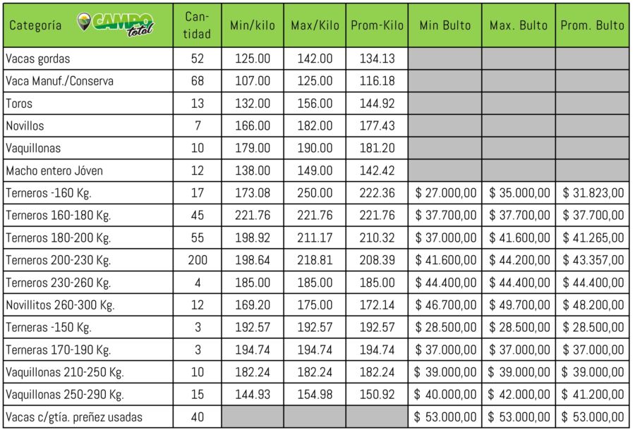 Si bien el embrete no fue importante en cantidad si la calidad de la hacienda se destacó y eso convalidó los precios logrados a través del martillo de Víctor Sisinni que trabajó con 30 y 60 días de plazo en una jornada también donde la agilidad fue protagonista.