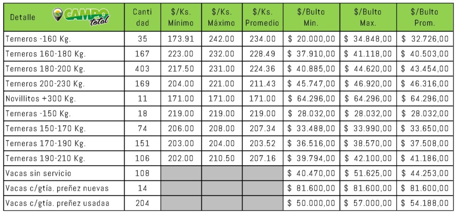 Con un plazo de 30 y 60 días buena calidad de Invernada y Cría que salió a precios interesantes y que comienzan a mostrar éste nuevo mercado que tracciona entre una demanda necesitada de carne y la exportación cerrada y repleta de incertidumbre.