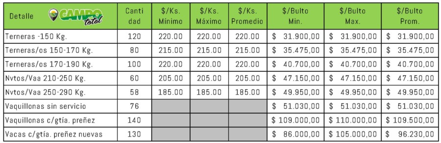La subasta tuvo calores destacados donde sobresalieron 140 vaquillonas con garantía de preñez que llegaron a los 109 mil pesos.