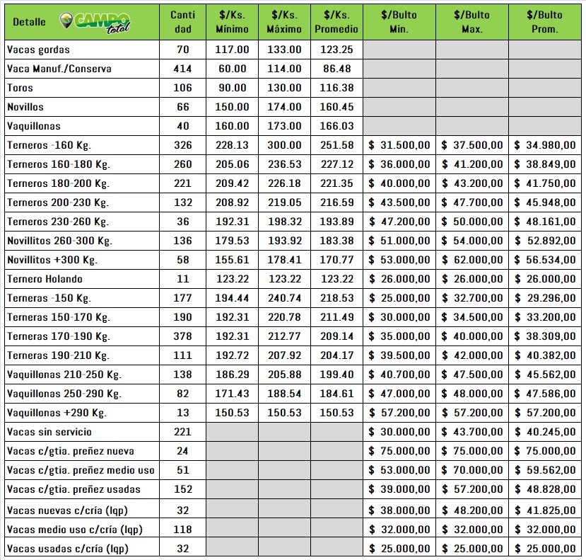 La invernada, tuvo su tarde, ya que más allá de la “depresión” que causa saber que el novillo de exportación ya no es tan atractivo, las manos acompañaron para que la leve caída, no fuera pronunciada y se terminara en buenos valores promedios que seguramente con corrales más numerosos y un ternero con más calidad, hubiéramos hablado de mucha firmeza.