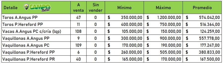 Lo de los vientres fue nuevamente excelente con lotes realmente llegaron a valores extraordinarios como vacas PC con cría que se comercializaron en 300 mil pesos.