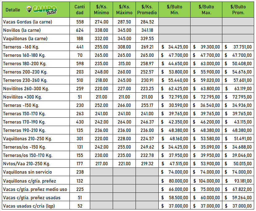 Con plazos de 30, 60 y 90 días se vendió con buenos valores donde algunas categorías sobresalieron en máximos como unos 105 terneros Wagyu de 200 kilos que volaron por el airea 315 pesos.