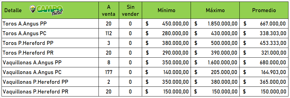 A la hora de los vientres no cambió la mano, los Hereford se fueron de un palo y los Angus llegaron a un gran promedio destacándose el máximo para las coloradas en 205 mil pesos.
