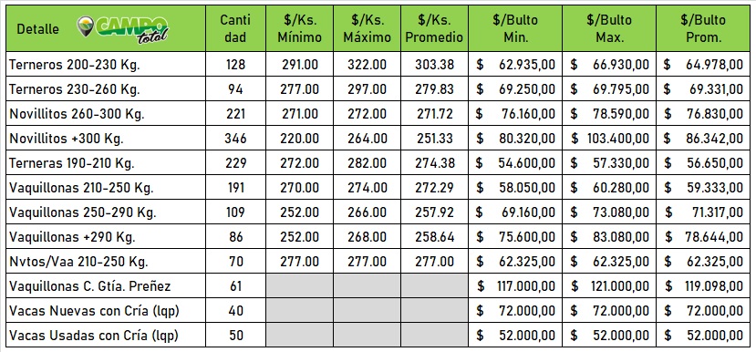 El tradicional martillo de Juan José Ercazti comercializó 1.625 animales de Invernada y cría con un plazo de venta que alcanzó los 30 y 60 días.