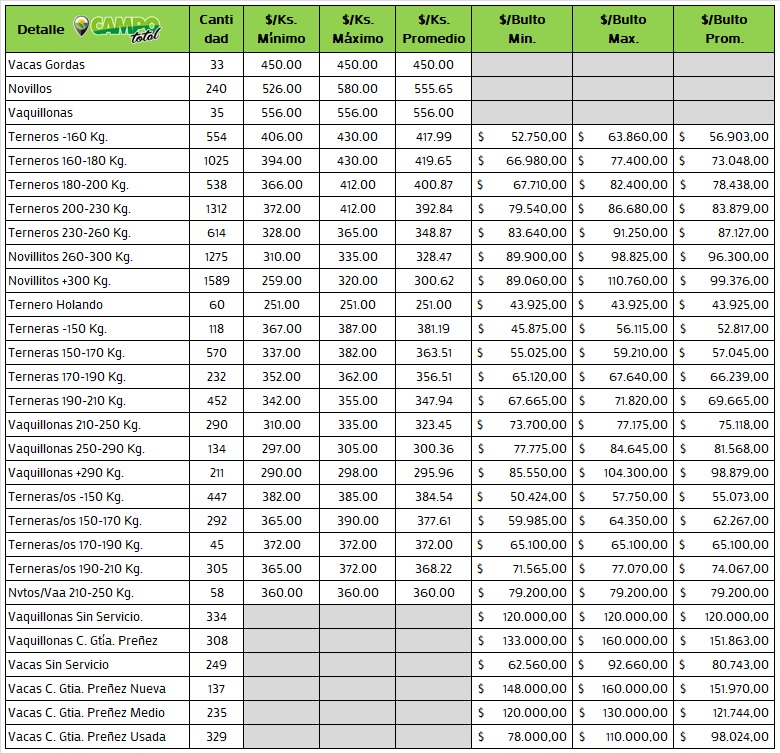 Categorías: Gordo, Invernada y Cría
