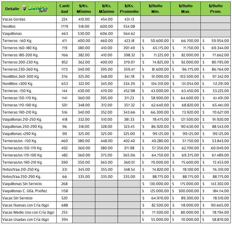 Categorías: Gordo, Invernada y Cría