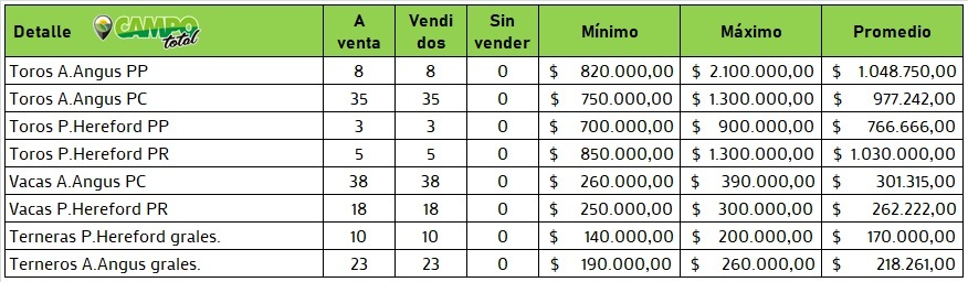 Venta muy ágil, con un predio repleto de interesados mas varios en el streaming, muy buena calidad de hacienda y condiciones comerciales mas que importantes en un país impredecible por éstos días. Así fue que hubo muchas manos que lograron valores mas que importantes que dejaron muy satisfechos a los organizadores.