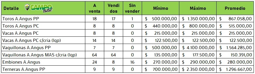Uno a uno fueron saliendo los animales a pista coronando uuna venta realmente importante para la categoría.