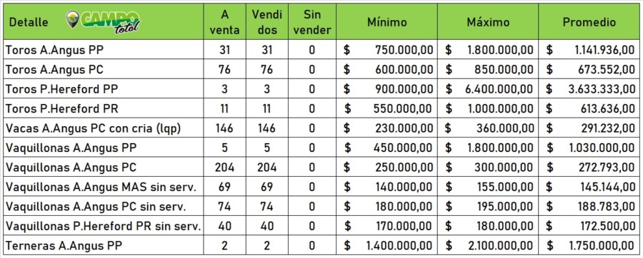 Comercializó 661 reproductores en su venta en Estancia El Retiro, en Nueva Galia y con la firma Alfredo S. Mondino.