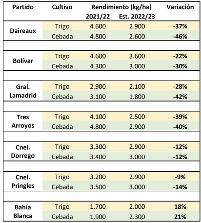 A continuación, se detalla los rendimientos proyectados para cada partido. La estimación está sujeta a las condiciones climáticas de las próximas semanas.