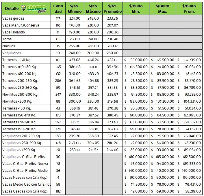 Categorías: Gordo – Invernada – Cría