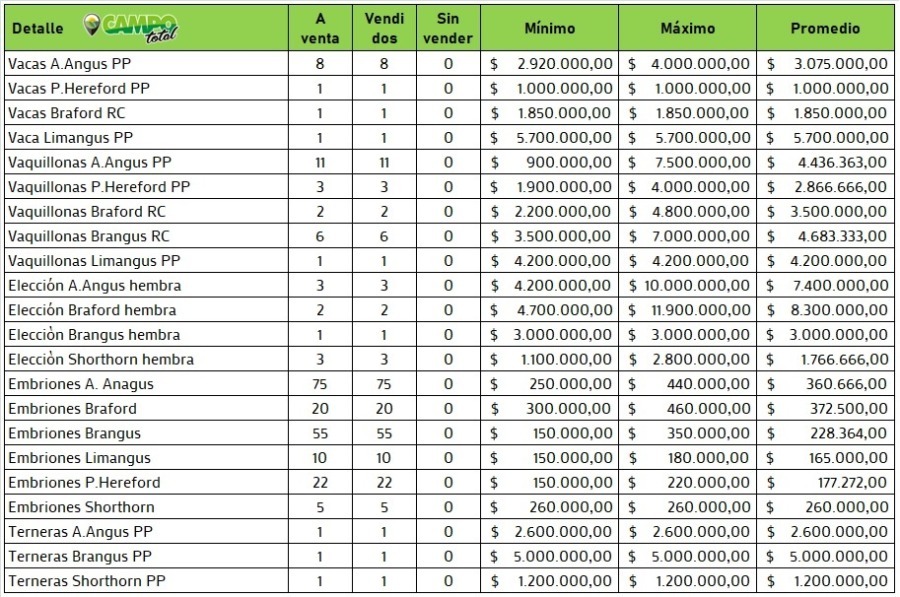 Se realizó la 13° subasta de Genética de Elite que organiza Carlos Ojea Rullán con la participación de 43 cabañas de seis razas diferentes.