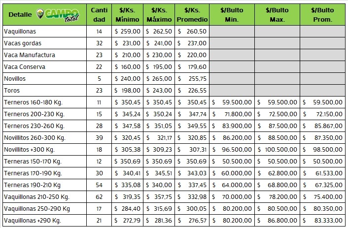 Categorías: Gordo – Invernada – Cria