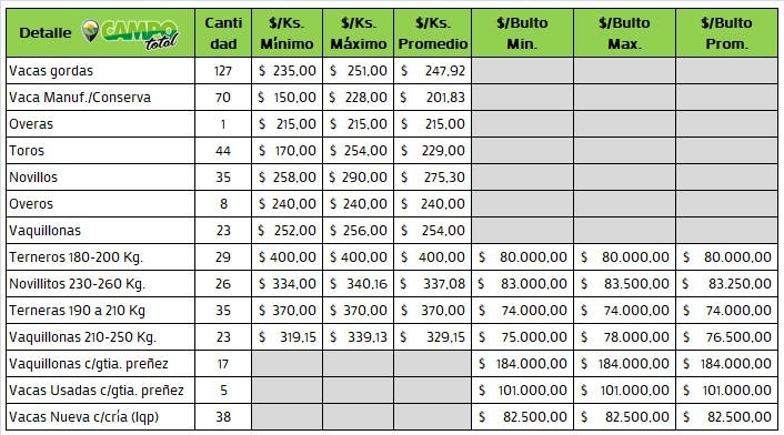 La invernada con pocos lotes, donde enseguida llegaron las ofertas de los muchos “amigos” y clientes que se acercaron a la cita de fin de año, cerrando con dos lotes de vaquillonas preñadas de buena procedencia, un corral de paridas con buenos valores y unas CUT, cerrando así un muy buen año, con remates mensuales y un volumen de hacienda para muchos inesperado en este centro supuestamente agrícola, que mostró de la mano de esta casa, ser ganadera y con muy buena mercadería.