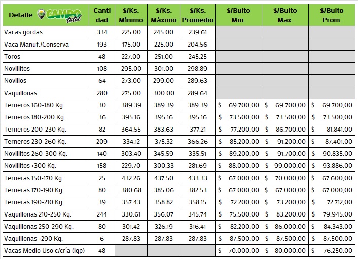 Categorías: Gordo – Invernada – Cría