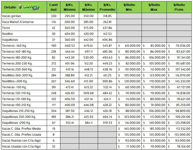 En medio de un mercado revolucionado, se realizó el remate mensual de la firma Vittori-Ercazti donde todas las categorías mostraron valores que hasta sorprendieron a los presentes.