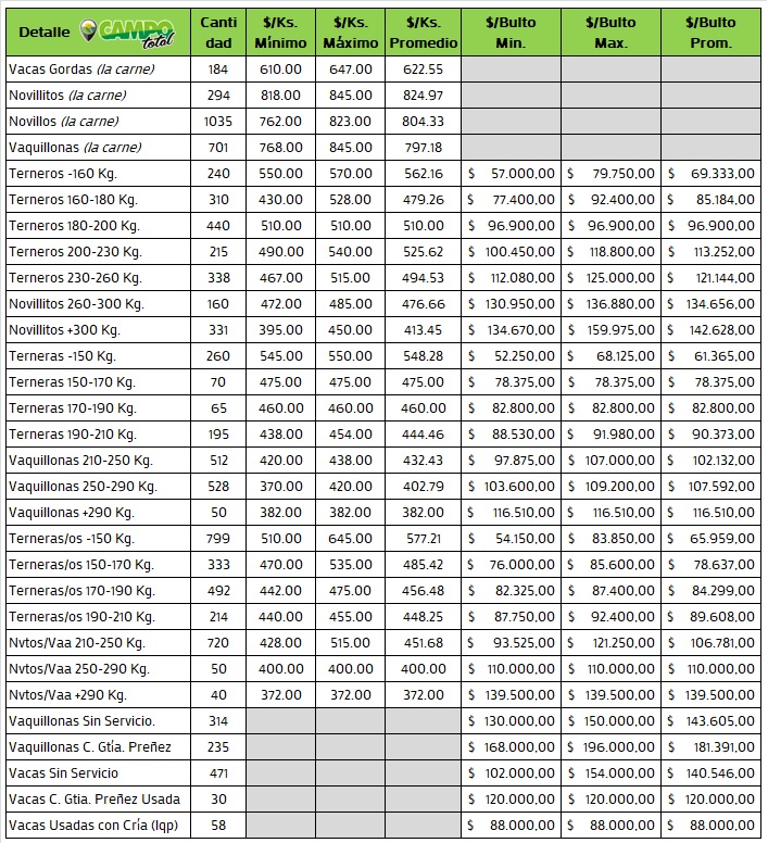 Categorías: Gordo – Invernada – Cría