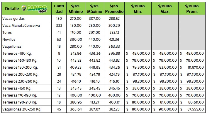 Y hoy enfrentaron un contexto sumamente desfavorable y conocido por todos. Se arrancó bien con varios lotes de consumo de calidad y algunas pujas de operadores que tenían «su numero», se continuó con muy buenos lotes de vaca gorda a los valores de estos tiempos y con la calidad que la plaza siempre ofrece y luego llego la conserva donde se vieron los mismos pisos que en el MAG, ni mas ni menos. Es el mercado, es la oferta y la demanda que por estos días no tracciona demasiado, en ningun lugar, en ningun remate.