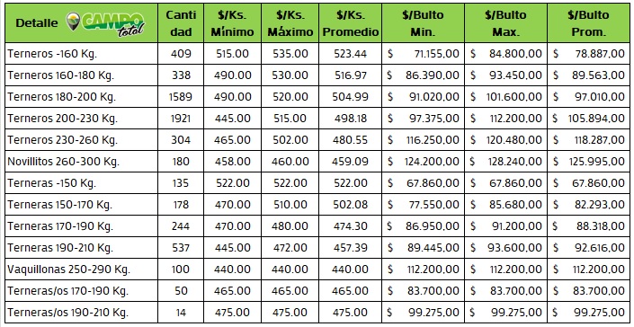 Por el otro lado el mercado, ese que valora y que tiene sus vaivenes de éstos tiempos. Ese que en cada lote puso lo que creia que era justo o hasta donde le daba.