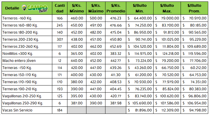 Casi 2000 vacunos se comercializaron hoy en la Sociedad Rural de Ayacucho con la firma Colombo y Magliano