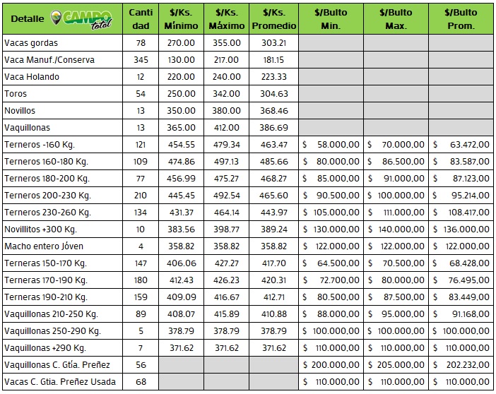 Categorías: Gordo – Invernada – Cría