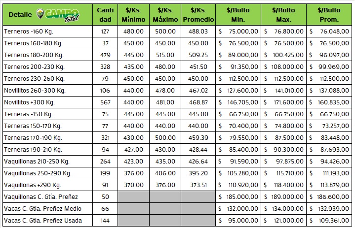 Vittori Ercazti SA realizó el mensual de invernada y cría a través de Plaza Gaadera con mas de 3100 animales y firmeza en algunas categorías