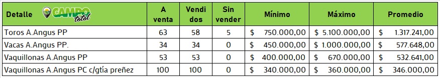 Finalizada la subasta se informó la venta de los 5 toros PP