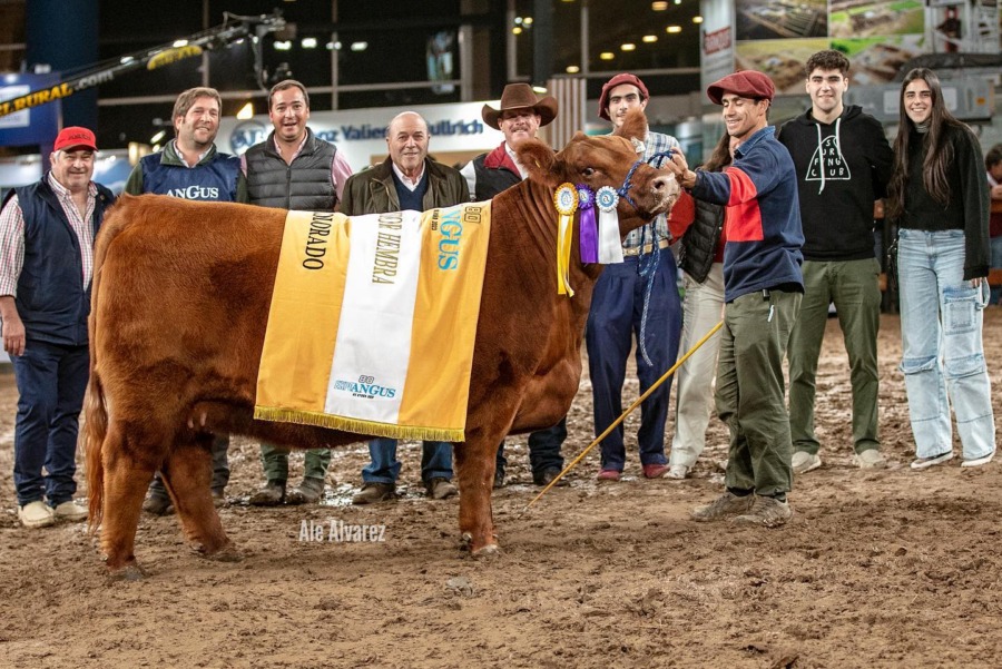 Gran Campeón hembra colorada de la 80° Exposición de Otoño de Angus el Lote 278 de Ganadera del Villaguay de Cabaña Santa Lucia. Reservado Gran Campeón Lote 117 de Cabaña La Paz de Noel Werthein. Tercer mejor hembra el lote 258 de Gue Glen Sur de Raul Zanguitu Carlos Bodanza – Damián Hinding – Mauricio Bicondoa – Gabriel Varela