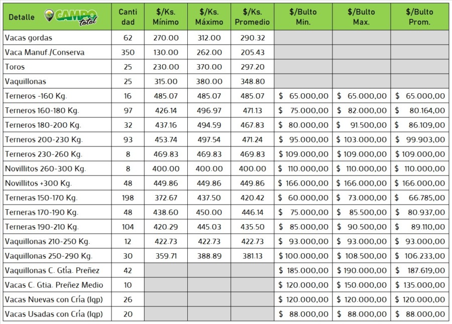 Categorías: Gordo – Invernada – Cría