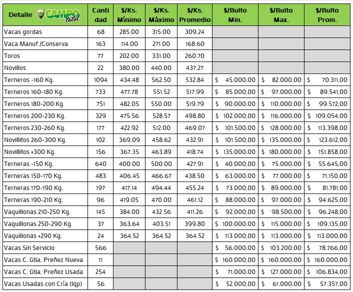 Se subastaron mas de 6.200 vacunos de la firma Néstor Hugo Fuentes SA en su predio. con valores e interés donde varias categorías tuvieron maximos destacados.