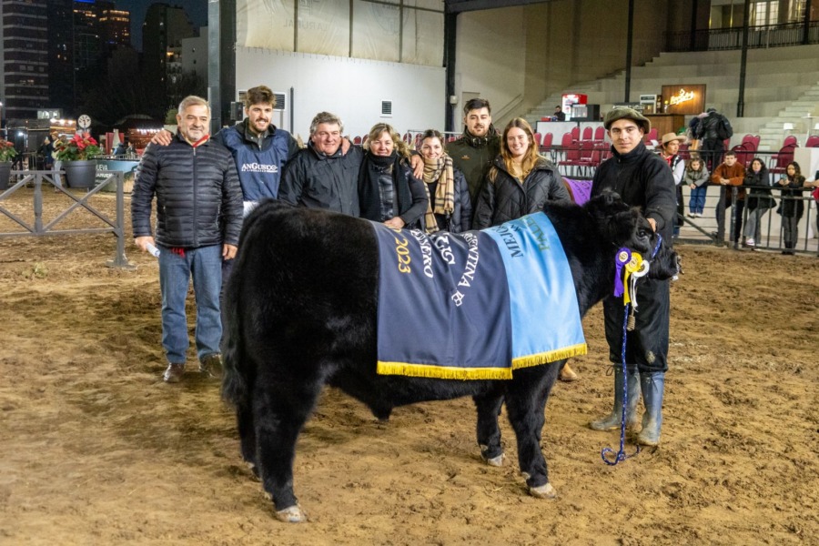 Mejor ternero Angus de Palermo 2023 el lote 220 de Santa Rosa de Indio Nuevo de la familia Bellocq de la localidad de Indio Rico.