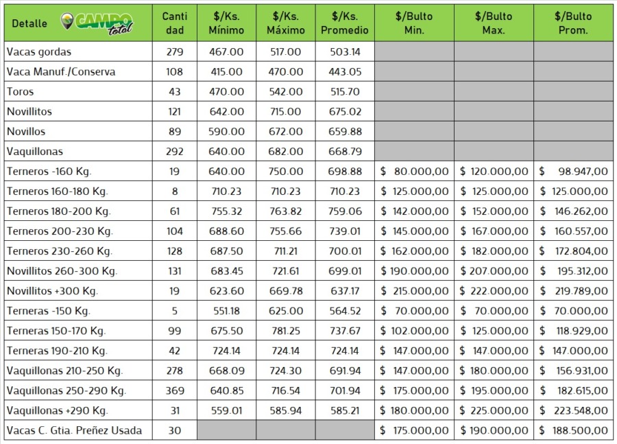 La invernada parte de una historia conocida, que siempre suele tener en Dorrego precios que sorprenden: por eso el ternero fácilmente superó los 750$ en muchos lotes que por calidad y cantidad, eran pujados por feedlots. Todo el novillito bien firme arriba de 690$ mientras que la ternera, tuvo sus precios con algunos lotes por encima de los 700$, todo con mucha firmeza.