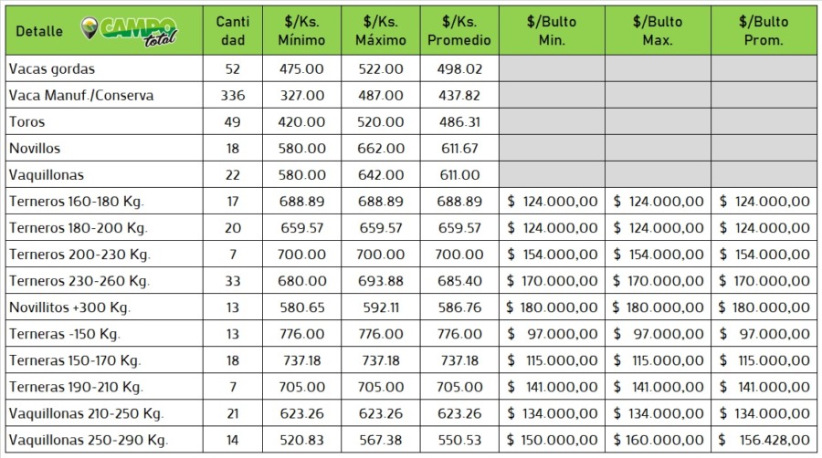 Categorías: Gordo, Invernada y Cría