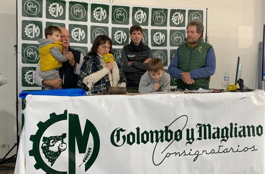 Con el salón de la Sociedad Rural de Tres Arroyos con muchos amigos y clientes, las pantallas y el equipo de Colombo y Magliano SA comenzaron las ventas tras la bienvenida de Ingrid repleta de emoción.