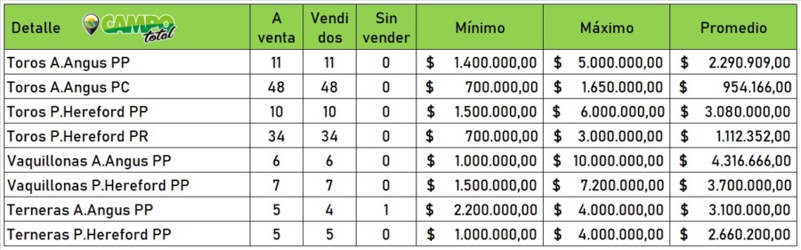 Una importante jornada comercial se concretó en la Sociedad Rural de General Belgrano con el remate anual de Angus y Hereford de Las Tranqueras de Horacio La Valle y Marta Vila Moret.