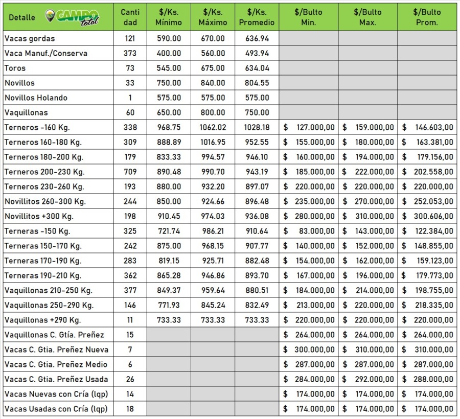 Categorías: Gordo – Invernada – Cría