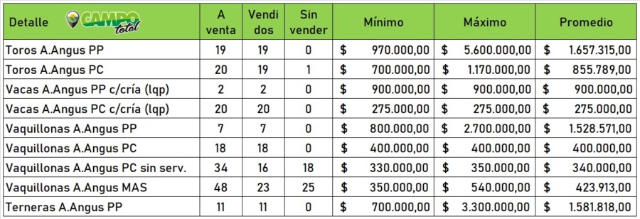 Se vendió una ternera al 50% en 3.300.000 pesos.