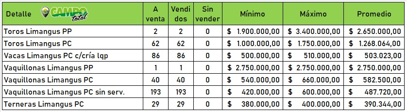 Asi, con un encierre realmente muy destacado, se realizó la segunda venta del Limangus Pampeano a través de la firma consignataria Alfredo S. Mondino y la participación de Cabañas como La Coincidencia, Don Eduardo, La Blanqueada, Don Damian y El Cuadrero.