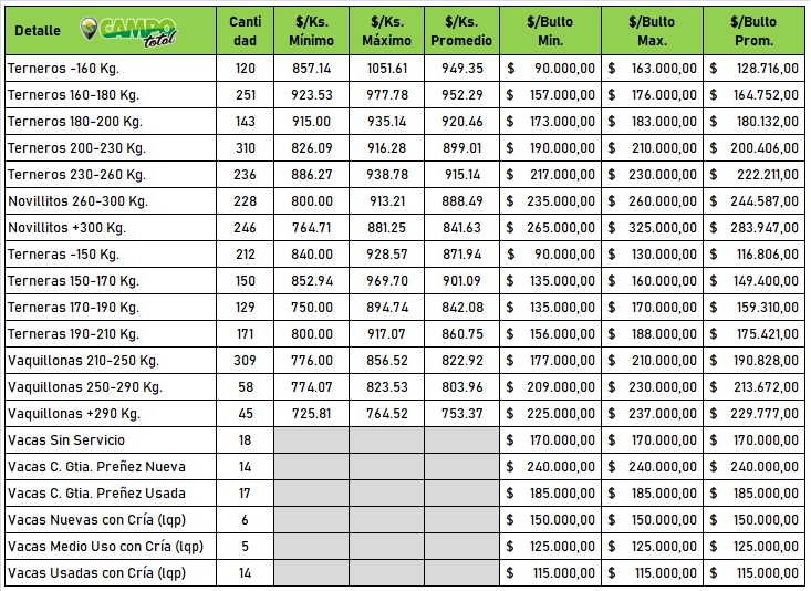 Categorías: Gordo – Invernada – Cría