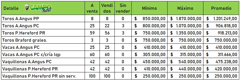 Las paridas, preñadas y sin servicio fueron saliendo lote a lote en los corrales, armando su mercado y colocándose en su totalidad tanto propias como de Santa Rosa y Santa María con el oficio de Juan Arrox en el martillo y todo el equipo de Campos y Ganados a pleno.