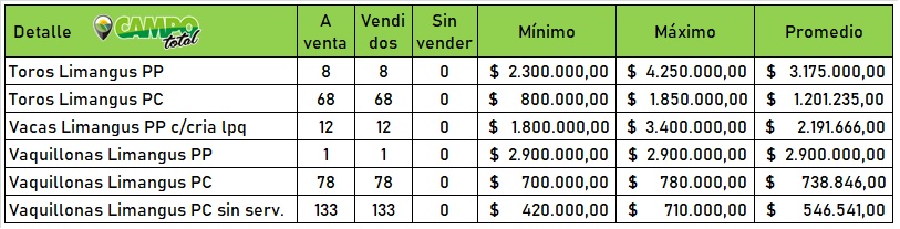 Siempre con manos, con muchas pujas, con los teléfonos y los presentes, la venta era muy ágil demostrando que el Limangus ya no es futuro, es presente. Así llegó a la pantalla el encierre de toros PP con sangres consagradas como Patricio, Ringo Star o Enrique para que con manos permanentes, pujas interesantes y un promedio muy destacado no quedara una pata sin vender en pocos minutos.