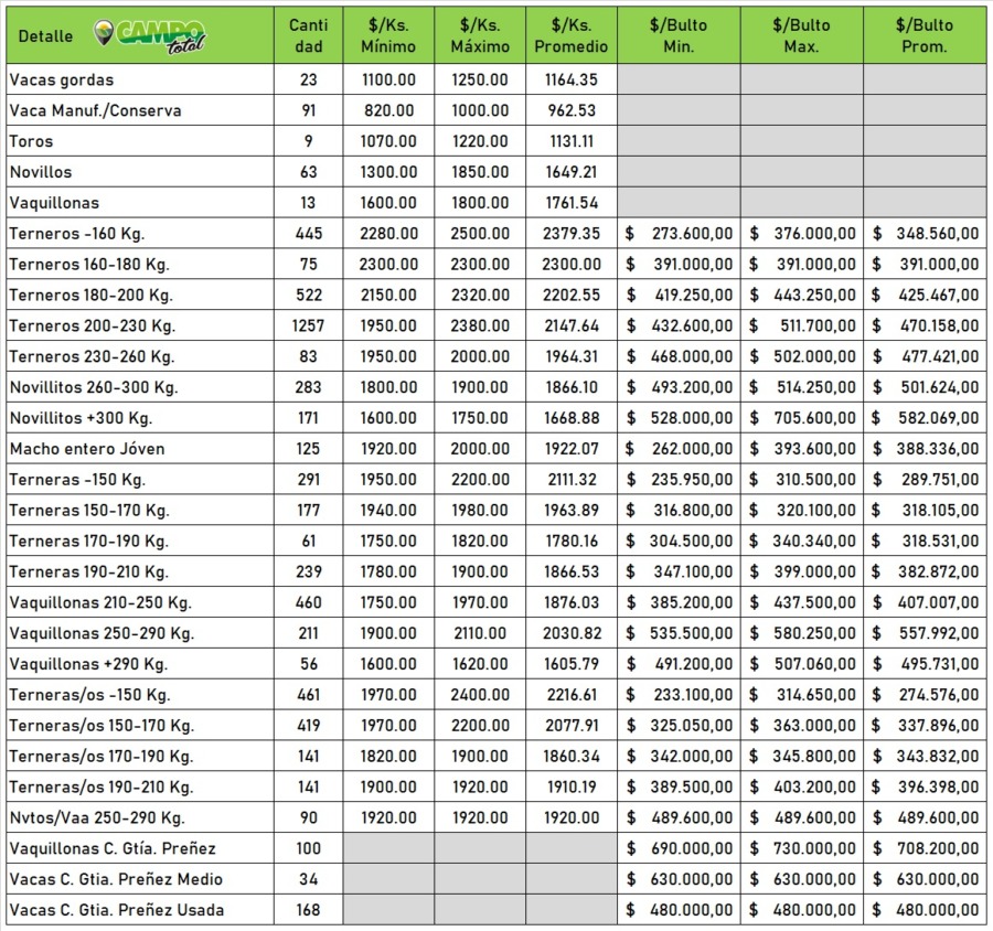 Categorías: Gordo – Invernada – Cría