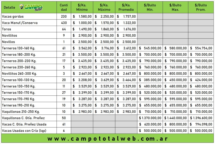 Para el cierre nuevamente la vaca, en este caso la de cría. Con un incipiente cambio de ánimo para reponer que se está viendo en el mercado; y con esa tendencia se colocaron sin problemas primero las vaquillonas preñadas a 1.400.000 pesos de promedio, tónica que se mantuvo en las usadas.