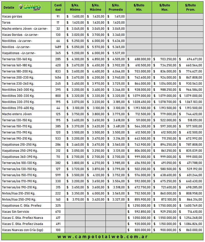 Y si faltaba un ingrediente, llegó con los vientres, allí otra vez hubo valores para volver a creer en esta categoría que siempre nos hace “sufrir un poco”, justamente ayer no fue ese día, todo lo contrario, valores de 1.7 millones de pesos en preñadas, vacas con cría a más de 900 mil lo que pisa, solo hay que mirar la tabla de los resultados y hacer propias conclusiones.