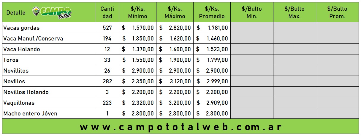 En sus propias instalaciones, la firma Martín y Alonso SRL concretó la subasta de hacienda a la balanza