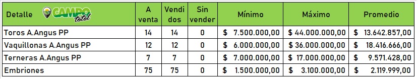 El comienzo fue para las vaquillonas, con las elecciones, y cuando aparecía un ejemplar con muchas manos fue donde se vieron valores sumamente distintos. En las vaquillonas un máximo de 36 millones, en las terneras, un máximo de 17, en tanto que en los toros puros de Pedigree apareció un hijo de Mateo que llegó a los 44 millones de pesos.